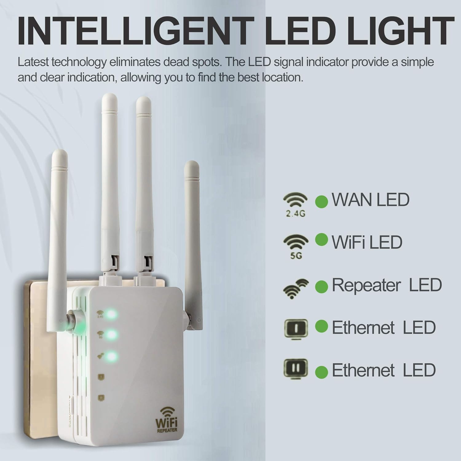 Wifi Range Extender 2 4ghz And 5ghz With 4 External Advanced Antennas Full Coverage Wifi Extender Signal Amplifier With Ap Sdom Repeater 1200mbps Wireless Signal Repeater Booster Repeater Mode Electronics Repeaters
