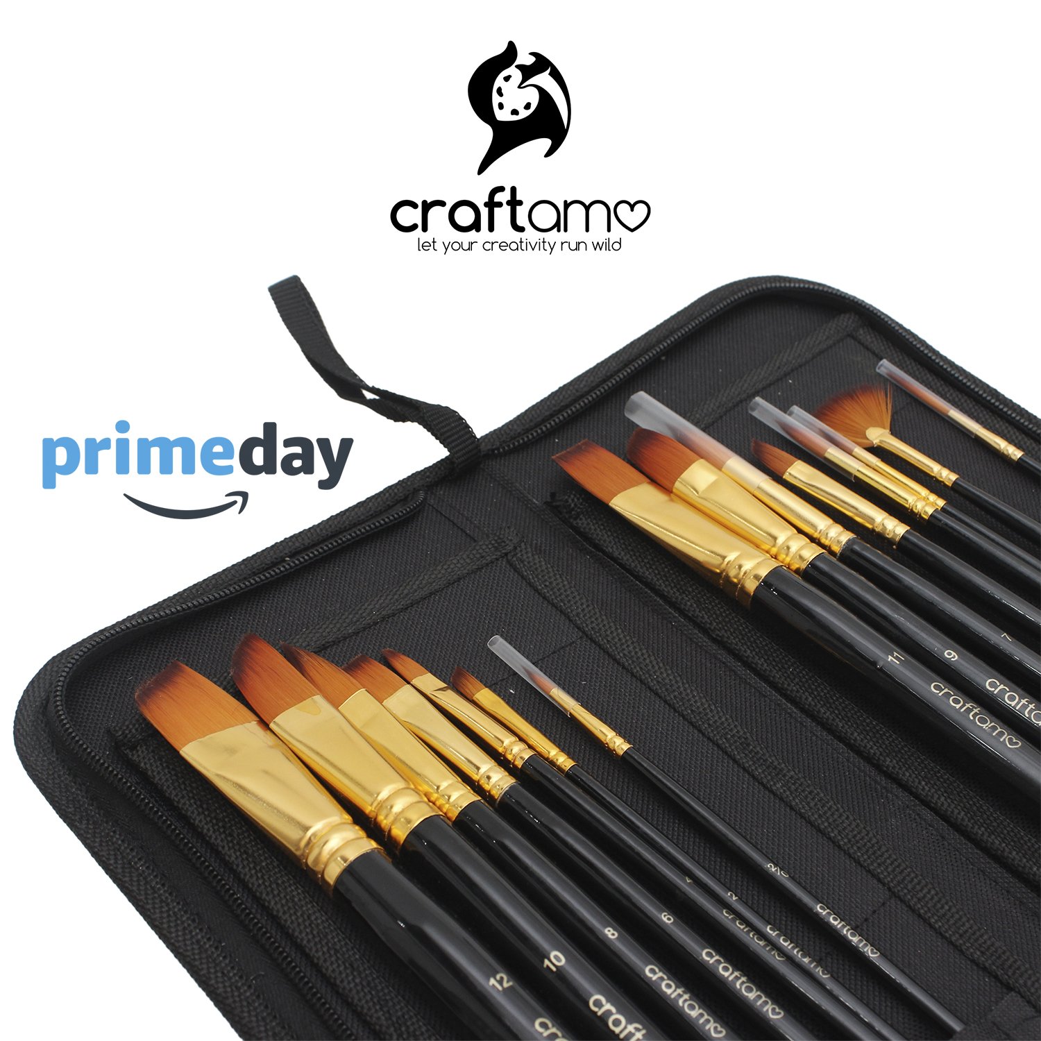 Kit de Pinceaux de Peinture dArt Craftamo Pour Aquarelles et Pour le Visage à lHuile Peinture Acrylique 15 Pinceaux de Peintures Assortis avec Etui de Transport/Support Sets de pinceaux