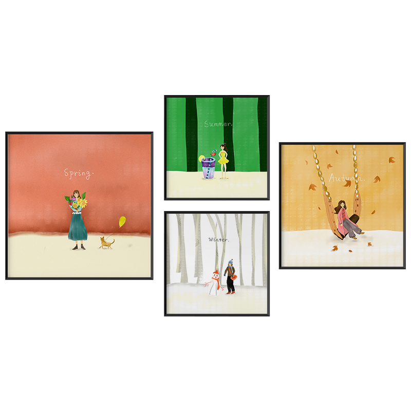 夢幻四季客廳現代簡約裝飾畫沙發背景暖色系組合掛畫飯廳牆面壁畫